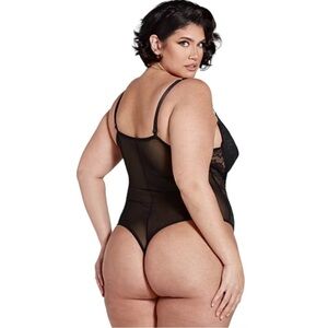 Sexy and beautiful, this bodysuit makes a gorgeous statement with its pretty strappy details, a supportive underwire bra and sexy thong panty cut. The lace front and mesh back makes it a standout and sexy must-have.