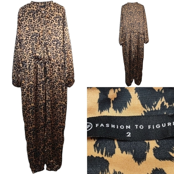 This Fashion to Figure Leopard Print Jumpsuit Romper in size 2 for women is a stylish and versatile one-piece outfit perfect for various occasions such as travel, parties, or casual wear. The long sleeve jumpsuit features a trendy animal print pattern in black and brown colors with a zipper closure for easy wear. Made from polyester, this plus-size romper from the brand Fashion to Figure is designed with a leopard theme, making it a fashionable choice for any season, whether it's winter, summer, fall, or spring. Perfect for those looking to make a statement with their outfit while feeling comfortable and chic.