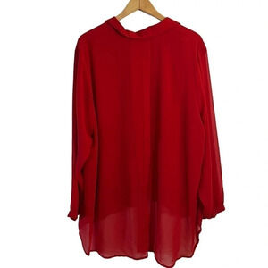 Fashion to Figure Red Chiffon Blouse 3X Hi Low Long Sleeves Sheer Slit Backside