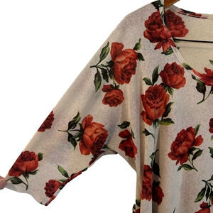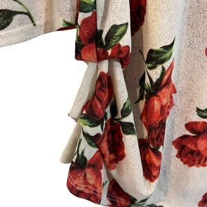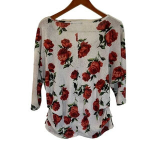Fashion to Figure Rose Floral Pattern Blouse Size 3X Ruched Sides Thin Stretchy