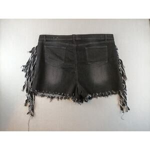 Fashion to Figure Womens Black Fringe Side Denim Shorts Size 26