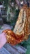 I really love the sleeves on this. They’re definitely statement sleeves and very full. The top is deep cut with a twist front. metallic gold sequence just encrusted this piece. There is a side zipper and please see the close-up. There are definitely a few sequins missing along that zipper under the arm. I don’t believe it affects the look, but you may so look closely otherwise in excellent condition.
