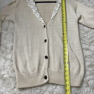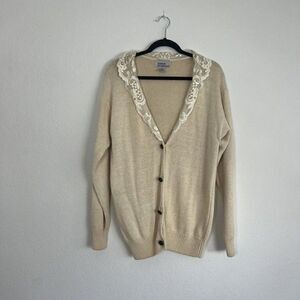 Fashion Crossroads knit Cardigan Sweater Vintage Button Down Cream Lace Collar