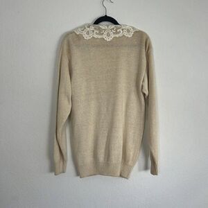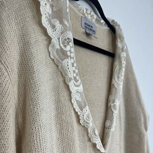 Fashion Crossroads knit Cardigan Sweater Vintage Button Down Cream Lace Collar.