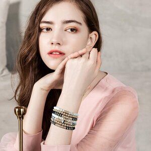 Fashion-Forward Bohemian 7-Strand Clay Bead Bracelets — Perfect for Layering