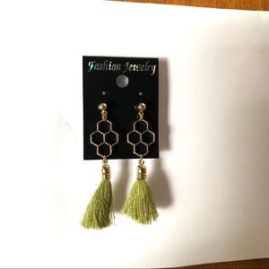 Fashion Jewelry Bohemian Boho Olive Green Tasseled Honeycomb Post Dangle Earrings