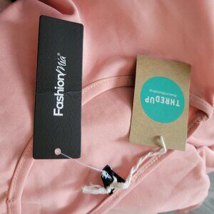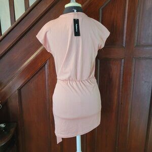 FashionMia Womens Pink Short Sleeve Belted Tunic Dress With Pockets NWT