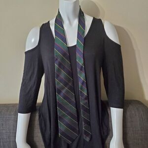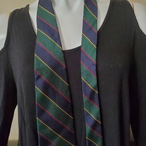 Fashion Neckwear Green, Blue, Yellow, & Red Striped Silk Tie
