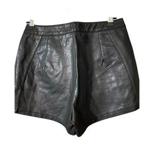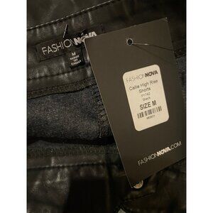 Fashion Nova Callie High Rise Shorts in a size medium. New. Faux leather. Laying flat waist 15in. Rise 12in. Inseam 2in. Solid black color.