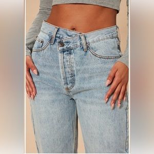 FashionNova Crossover Straight Leg Light Blue Wash Size 5 (Runs Big)