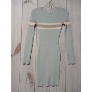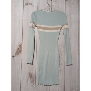 Fashion Nova Dress Ladies Small Blue Ribbed Mini Long Sleeve