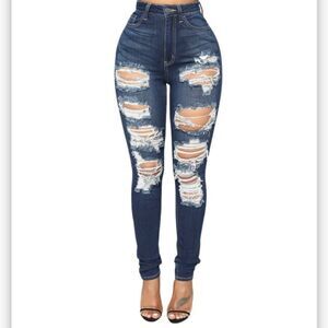 Fashion Nova High Rise Distressed Skinny Jeans 5 6