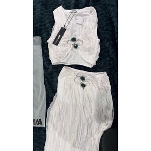 Fashion Nova Ocean Front Elegance Two Piece Skirt Set White Size Small