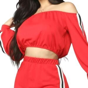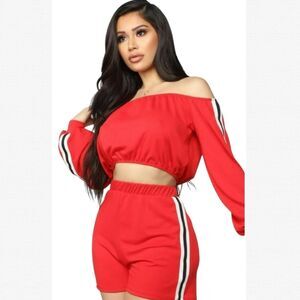 Fashion Nova Red Side Striped Crop Top High Waist 2 Piece Fleece Short Set 2X