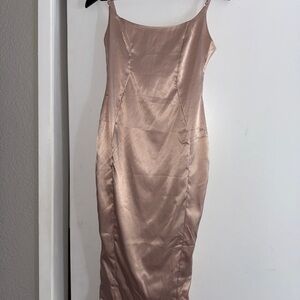FashionNova Satin Blush Midi Dress