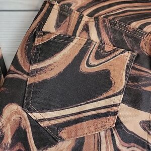Step out in style with these Fashion Nova retro jeans, showcasing a captivating brown swirl pattern with a long slim leg, high rise, and comfortable stretch cotton. NWT
