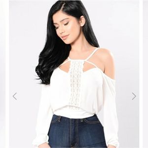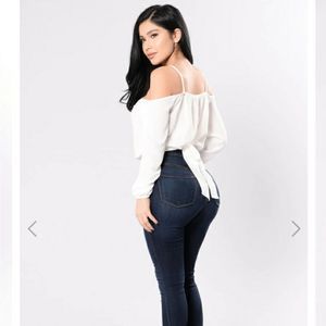 New with tags size 3X sage On a Holiday style top from Fashion Nova. Gorgeous neckline detailing, off the shoulder sleeves. Delicate tie in the back