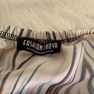 Cute chevron print boho blouse. Boat neck. Wear on or off shoulders. Elastic band waist with tie. 3/4 sleeves with elastic cuff. 100%polyester. In excellent used condition. Fashion Nova Size small