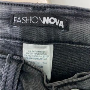 Fashion Nova gorgeous gray highly distressed Skinny Jeans size 5 in excellent condition. Waist is 13.5” and length is 26” .