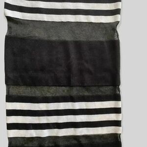 Fitted and sexy black and white striped body on dress. Has see through mesh Panama for that extra sexy appeal. Has major stretch. Size S but also fits XS. NWT
