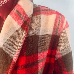 Fashion Nova Wool Red & Tan Plaid Flannel Coat Size Small