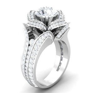 Fashionable 925 Silver Plated Rose Flower Shaped CZ Ring, MARR9405
