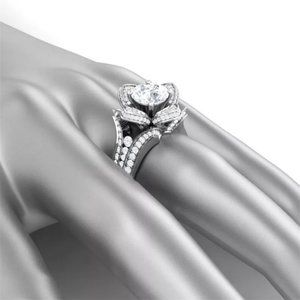 🌸Fashionable 925 Silver Plated Rose Flower Shaped CZ Ring, MARR9405
