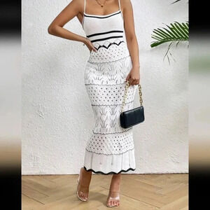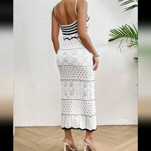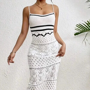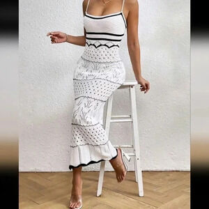 Fashionable Black And WhiteContrast Color Hollow OutSpaghetti Strap Dress