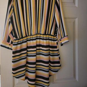 Colorful new office shirt, never worn, made of 100% Polyester, Machine Washable. This long sleeve shirt (size 12) is very comfortable in feel and wear! It can be paired with any bottom wear clothing due to the assortment of colors. It's a must have for your closet!