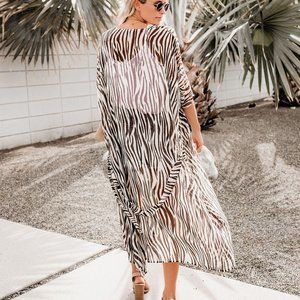 You will look so great in this light-weight chiffon cover up! It is light weight which is perfect for summer. It is animal print which is timeless and always cutting edge style.