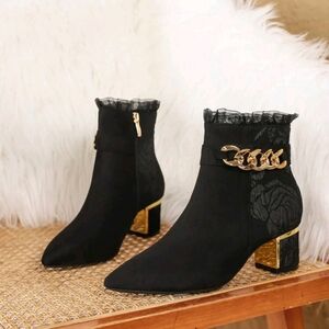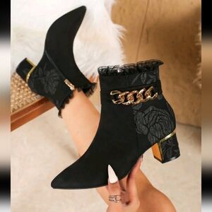 Fashionable Chunky Heel Boots,Lace Up Side Zipper Ankle Boots,Pointed Toe High