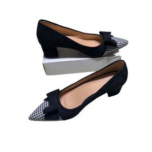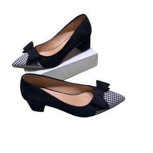 Fashionable Chunky Heels Womens Pumps Black White Houndstooth High Heels With Bows EU Size 42 (US 10.5)