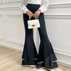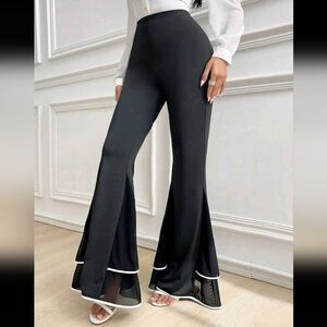 Fashionable Elegant Mesh Patchwork Flare Pants