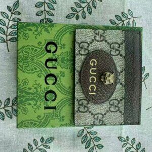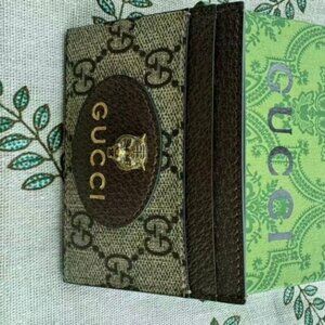 Accessorize with distinction using this fashionable Gucci card holder. It proudly displays the Double G logo, set against the classic GG Supreme canvas and elegant brown leather.