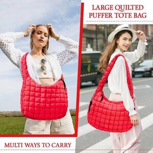 Fashionable Large Quilted Puffer Tote - Versatile Hobo Shoulder Bag for Women
