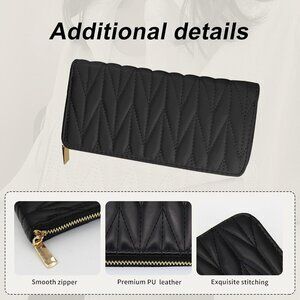 Features: This chic quilted faux leather wallet has a sleek zipper closure, giving it a modern, fashionable vibe. It offers plenty of space with 8 card slots, 2 cash pockets, and a zip pocket — perfect for organizing ID, cash, cards, and coins. The quilted texture adds a touch of elegance, making it great for daily use or special occasions.