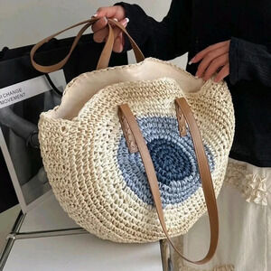 Fashionable, Minimalist, Casual, Colorblock Straw Bag