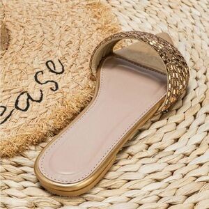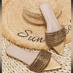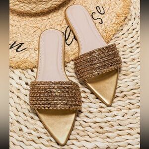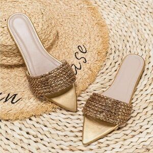 Fashionable Pointed Toe Rhinestone Decor Slip-on Flat Sandals 9