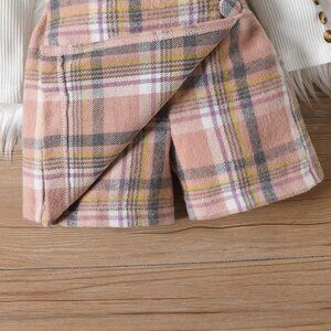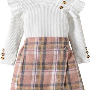 Fashionable Ruffled Top and Plaid Shorts Skirt Set for Toddler Girls — A cute, cozy outfit perfect for little style stars.