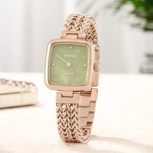 Fashionable Square Dial Quartz Watch for Women - Gold-Tone Stainless Steel Brace