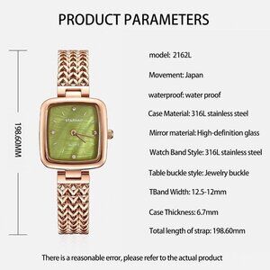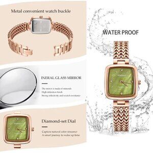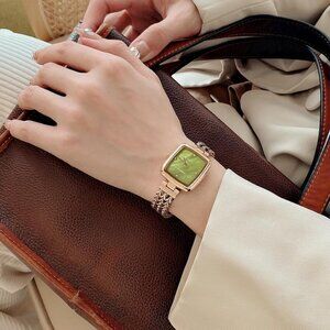 Waterproof Fashion Retro Square Watches for Women Green Stone Square Watch Ladies Gold Analog Quartz Watches