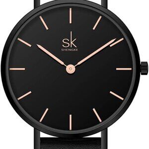Features: This ultra-thin dress watch features a 32mm alloy steel case and a 6mm thickness, making it super lightweight and perfect for everyday wear. The soft man-made leather strap is durable and sweat-resistant, with a width of 14mm. Uses precise Japan quartz movement for accurate timekeeping, with a 2-year battery life. The waterproof case can handle hand washing, rain, and sweating but isn’t suited for swimming.