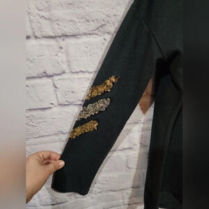 Fashionomics black long sleeve tee with sequin design on sleeves Size Medium