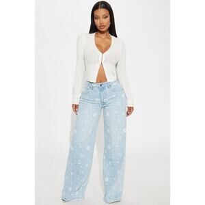 Fashionova Women Baggy Jeans Sz.9 Blue NWT Star Aligning print Jeans boho Y2K