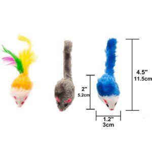🧿Made with Made with faux fur(Synthetic fur Mice Skin and Plastic Body), each small mouse contains sand that makes a rattle sound your kitty will go bonkers over.Rattling sound holds her attention by simulating noisy prey and further encouraging her instincts.