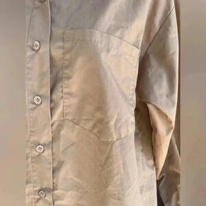 Fashon Nova women’s tunic camisole high low button down front pocket back buttons midi long sleeve dress top shirt tan Khaki beige sz XS can be a little oversized. Preloved no flaws