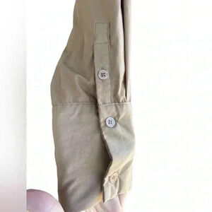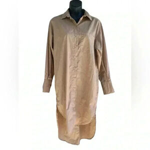 Fashon Nova women’s tunic camisole high low button down front pocket back buttons midi long sleeve dress top shirt tan Khaki beige sz XS can be a little oversized. Preloved no flaws