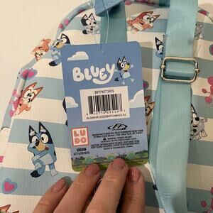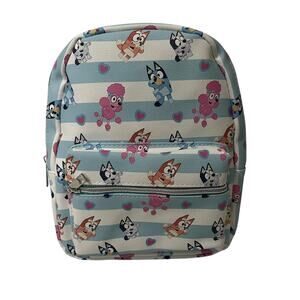 Style: Mini backpack with Bluey, Bingo, Chloe, and Muffin, Stripped, Blue and White, Kidcore, Cartoon, Travel, School
