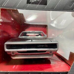 Own a piece of the Fast & Furious movie franchise with this limited edition Jada Toys 1:24 scale diecast model. This silver Dodge Charger R/T, famously driven by Dom in the films, comes unopened in its original packaging. Add it to your collection of Fast & Furious memorabilia or display it on your shelf for all to admire. This highly detailed model is manufactured in China and has been recommended for ages 8 and up. It features the iconic design of the 1968-1970 Dodge Charger R/T and is part of the Fast & Furious series. Don't miss your chance to own this beautiful piece of movie history.