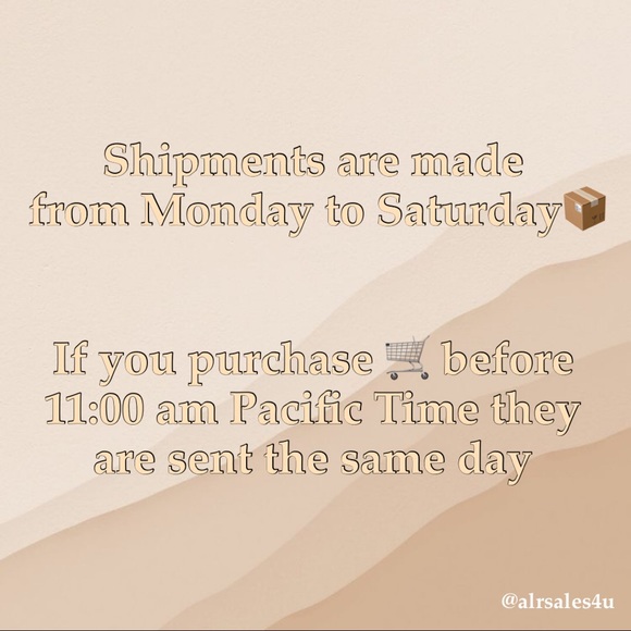 Shipments are made from Monday to Saturday📦, if you purchase 🛒 before 11:00 am PacificTime they are sent the same day!